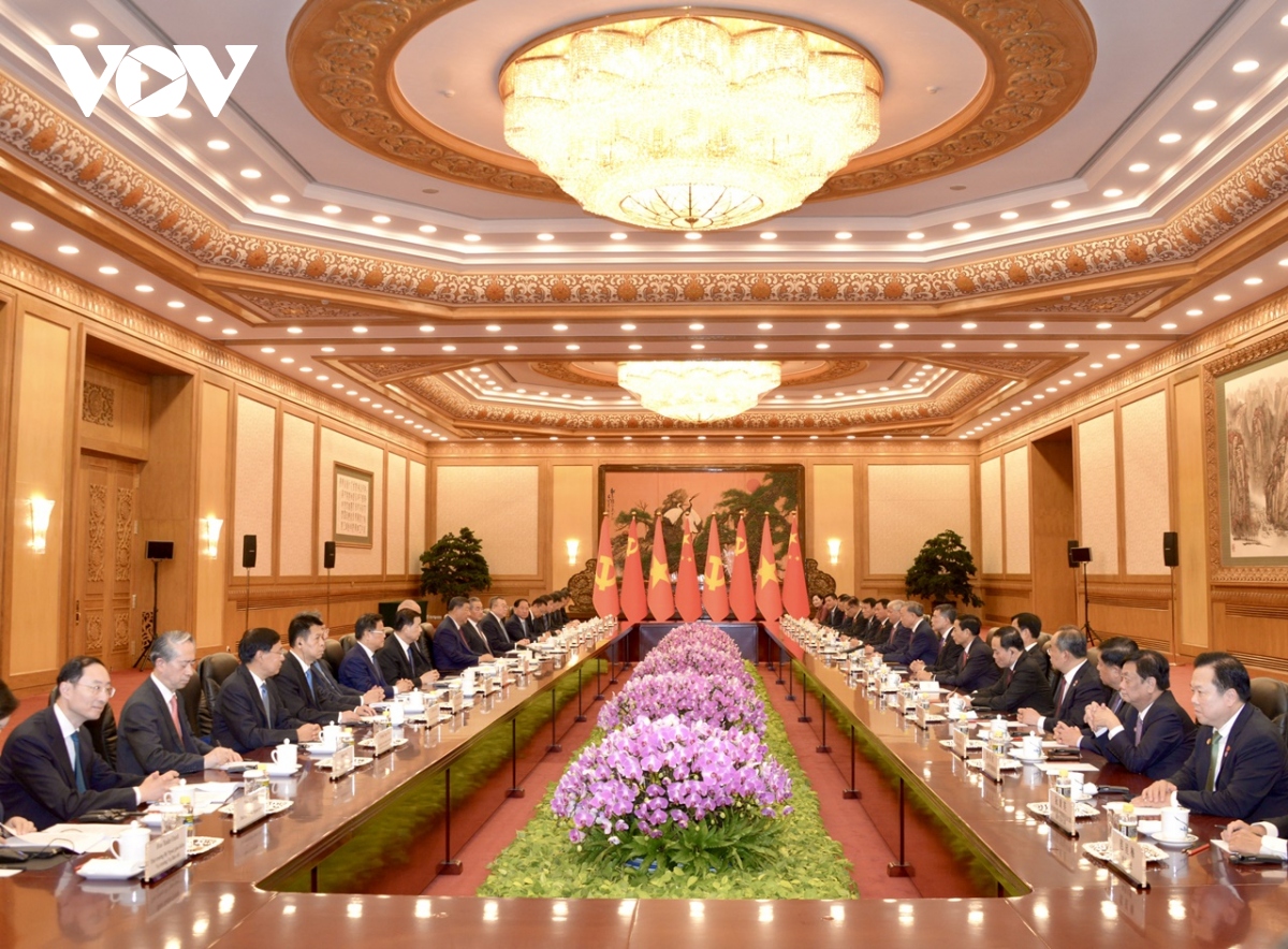 Die beiden Partei- und Staatschefs diskutierten über die großen Orientierungen, die das gegenseitige Vertrauen und die Freundschaft beider Nationen verbessern, die bilaterale Kooperation in allen Bereichen forcieren und den Frieden und die Stabilität im Meer aufrechterhalten sollten. Darüber hinaus verständigten sich beide Seiten darauf, den regelmäßigen Austausch zwischen den Spitzenpolitikern beider Parteien und Staaten aufrechtzuerhalten. Ihnen zufolge sollen Vietnam und China die Zusammenarbeit in Sicherheit, Verteidigung und Wirtschaft vorantreiben sowie die Verbindung der Eisen- und Straßeninfrastruktur verstärken. Auch der Austausch über die Reform staatlicher Unternehmen sollte intensiviert werden.