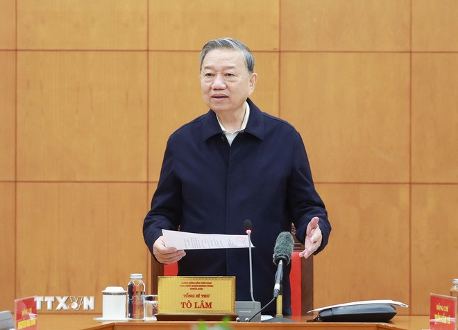 KPV-Generalsekretär To Lam redet auf der Sitzung. (Foto: Thong Nhat/VNA) |