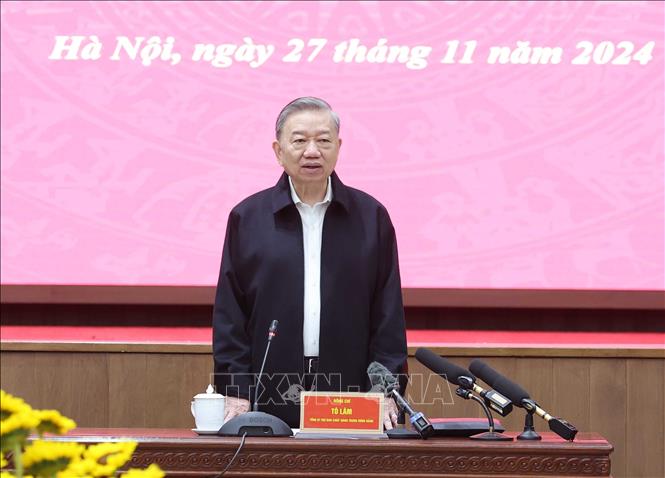 KPV-Generalsekretär To Lam redet beim Arbeitstreffen. (Foto: VNA) |
