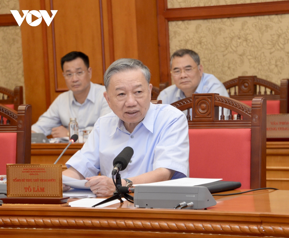 KPV-Generalsekretär und Staatspräsident bei der Sitzung mit dem Politbüro über die Bewältigung der Folgen des Taifuns Yagi. |