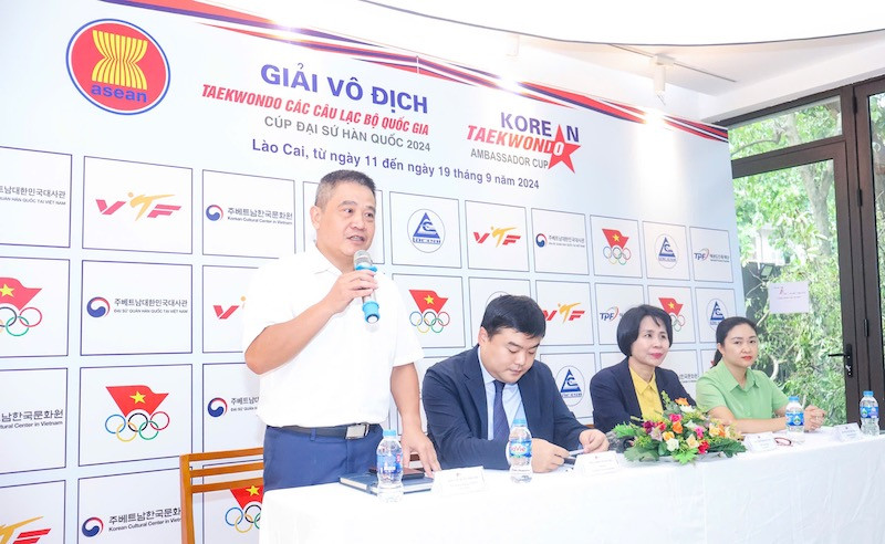 Pressekonferenz über die nationale Taekwondo-Clubmeisterschaft 2024. (Foto: hanoimoi.vn) |