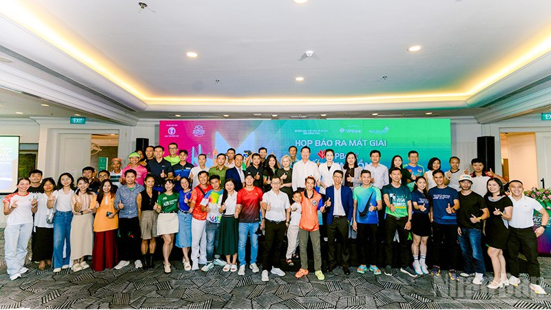 Vertreter der Läuferinnen und Läufer nehmen an der Pressekonferenz über den Marathon teil. (Foto: nhandan.vn) |