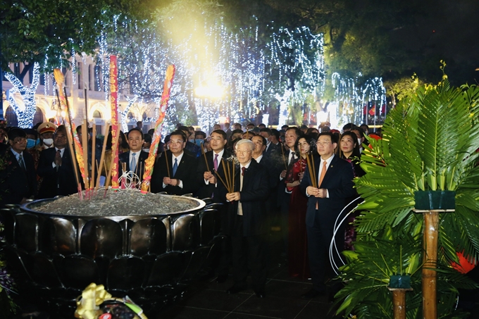 Anschließend zündete KPV-Generalsekretär und Staatspräsident Nguyen Phu Trong Räucherstäbchen zum Gedenken an König Ly Thai To an, der die Hauptstadt gegründet und verteidigt hat.