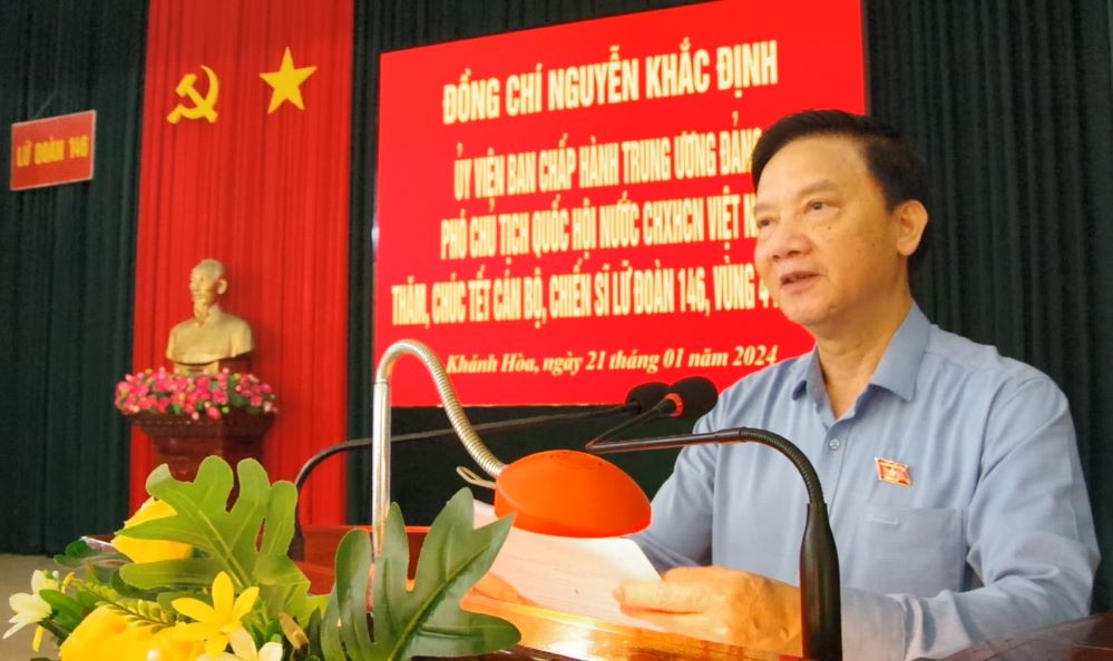 Vize-Parlamentspräsident Nguyen Khac Dinh hält seine Rede beim Treffen mit Offizieren und Soldaten der Brigade 146. (Foto: VOV) |