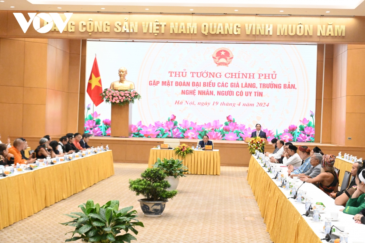 Der Premierminister lobte die Verdienste der Dorfältesten und -vorsteher, Künstler und Respektpersonen. Er forderte das Kulturministerium und die lokalen Behörden auf, die Förderpolitik für Dorfälteste und -vorsteher sowie Künstler und Respektspersonen effizient umzusetzen.