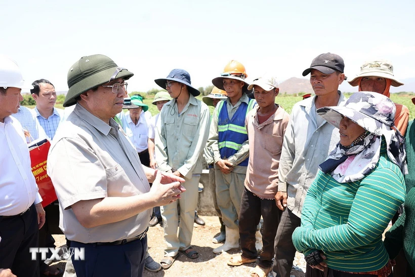 Der Premierminister spricht mit den Bewohnern über das Bewässerungssystem in Ninh Son. (Foto: Duong Giang/VNA) |