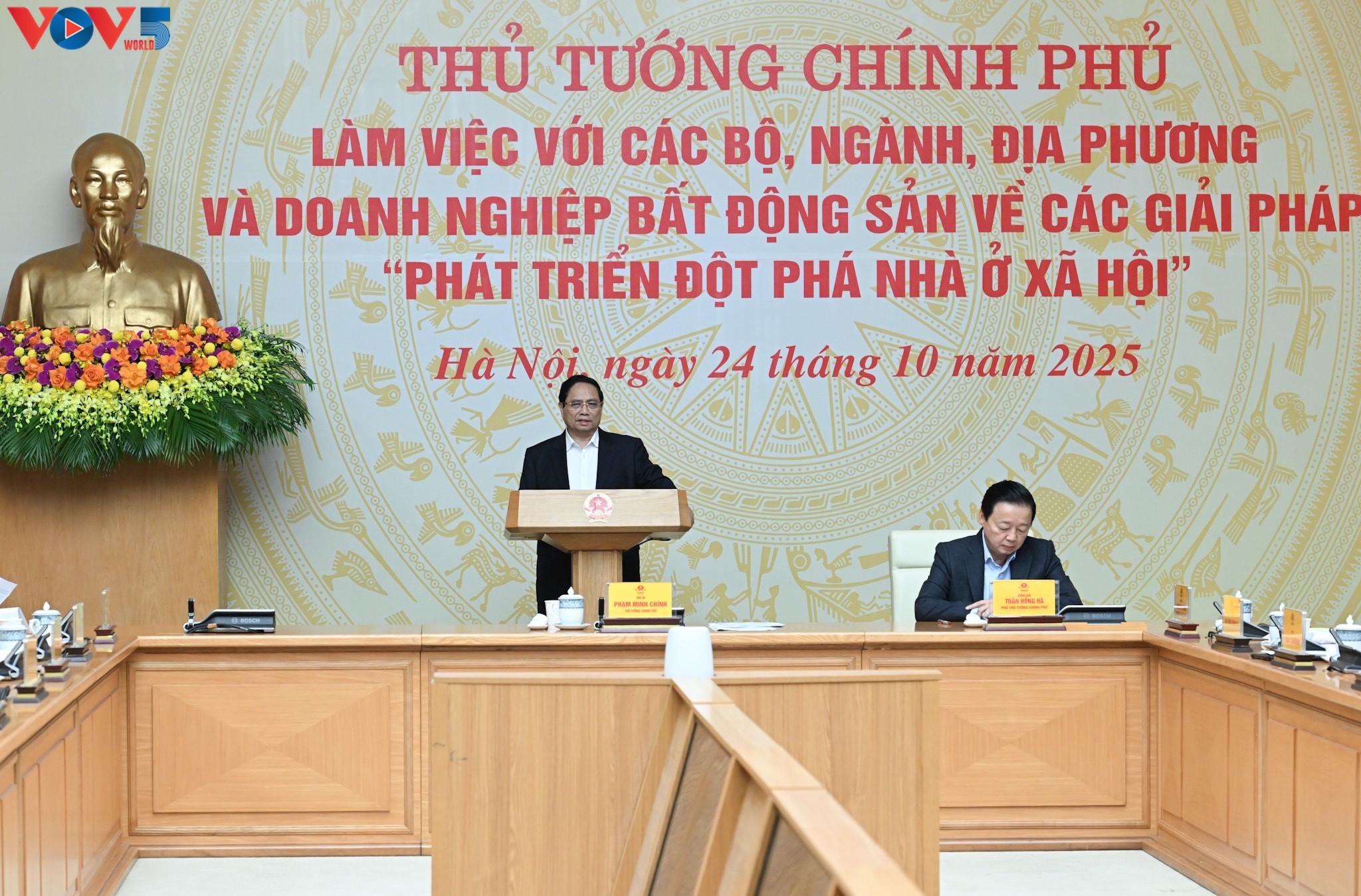 Premierminister Pham Minh Chinh forderte auf, den Bau sozialer Wohnungen zu beschleunigen und beauftragte das Bauministerium, einen neuen Regierungsbeschluss für den Zeitraum 2025-2026 zu entwerfen. Sozialwohnungen müssten über vollständige Infrastruktur verfügen, wie Verkehr, Energie, Wasser, Bildung und Gesundheit, sowie gleiche Rechte für alle Bewohner gewährleisten. Er verlangte außerdem, das Landpotenzial besser zu nutzen, die Finanzierungsquellen zu diversifizieren und einen Fonds für sozialen Wohnungsbau zu gründen, um die Entwicklung des Sektors zu fördern.