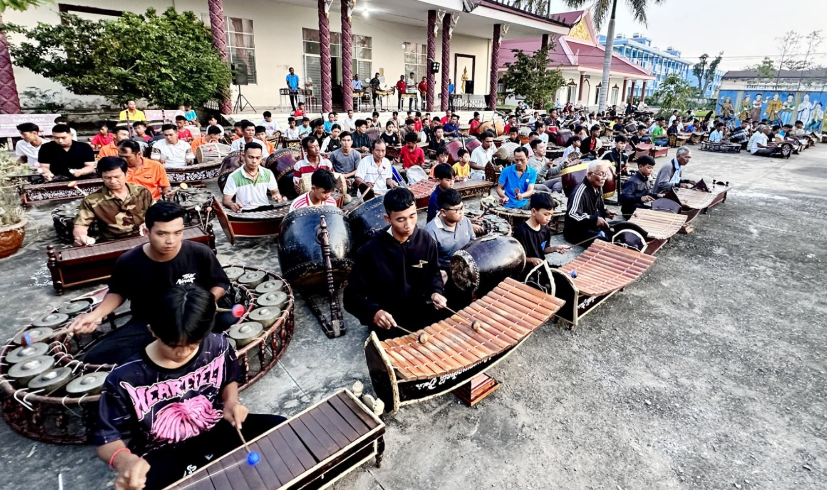 Bei dieser Aufführung spielten etwa 200 Musiker und Schauspieler fünf Musikstücke mit dem Einsatz von 20 Fünfklang-Instrument-Sets der Khmer. Die traditionelle Fünfklang-Orchester der Khmer besteht aus fünf Instrumentensets. Die Instrumente werden aus fünf Materialen hergestellt, die fünf verschiedene Töne erzeugen, darunter Instrumente aus Bronze, Eisen, Holz und Leder.