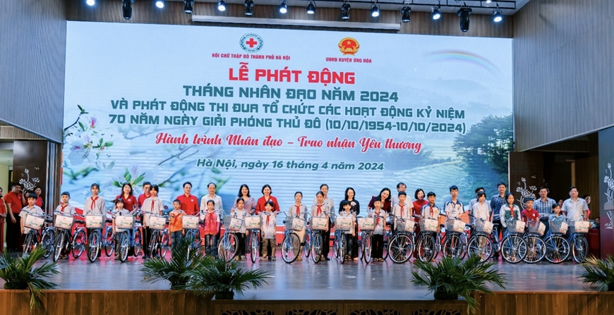 In diesem Jahr wird der Monat der Menschlichkeit im Mai stattfinden. Zur Begrüßung dieses Ereignisses überreichte das Rote Kreuz der Stadt Hanoi Sparbücher an zehn verdienstvolle Familien. Jedes Sparbuch hat einen Wert von zirka 200 US-Dollar. Aus diesem Anlass erhielten 20 Schüler aus schwierigen Verhältnissen im Kreis Ung Hoa jeweils ein Fahrrad.