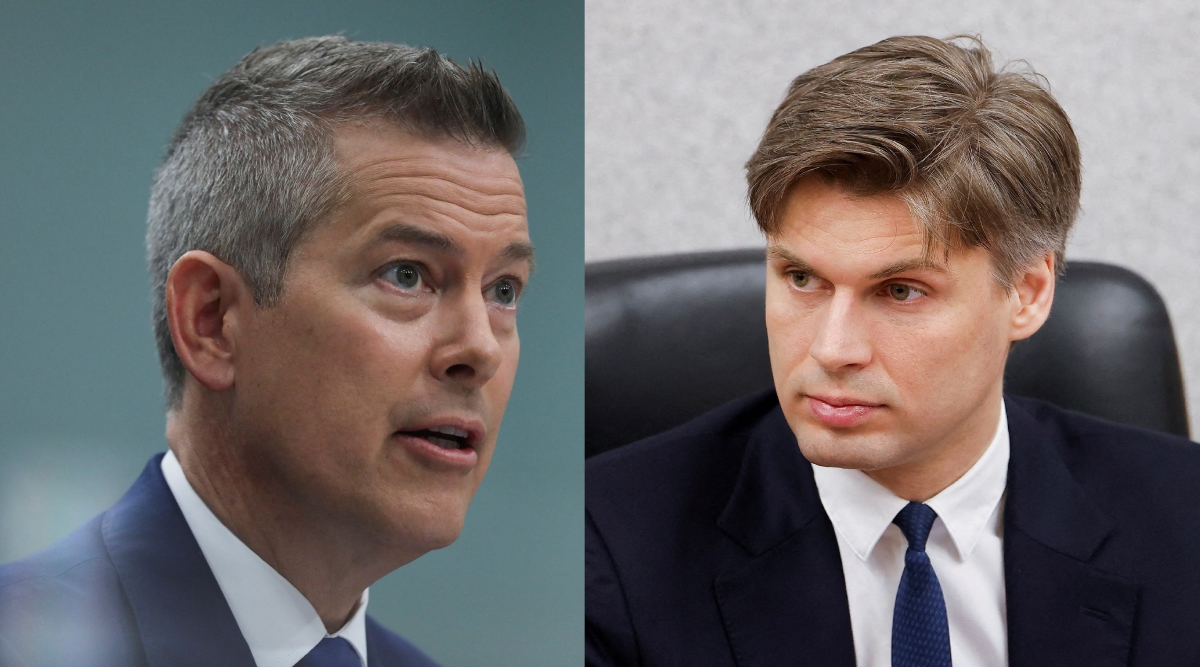 Direktor der Russischen Weltraumforschungsgesellschaft, Dmitry Bakanov (r.) und US-Verkehrsminister und Direktor der US-amerikanischen Nationalen Luft- und Raumfahrtbehörde (NASA) Sean Duffy. (Foto: Reuters) |