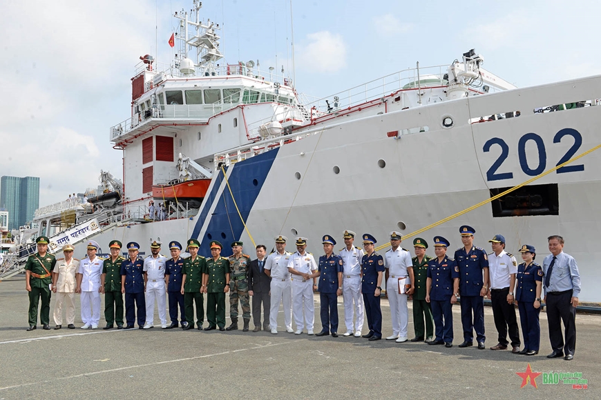 Der Empfang des Schiffes der indischen Küstenwache am Saigon-Hafen. (Foto: qdnd.vn) |