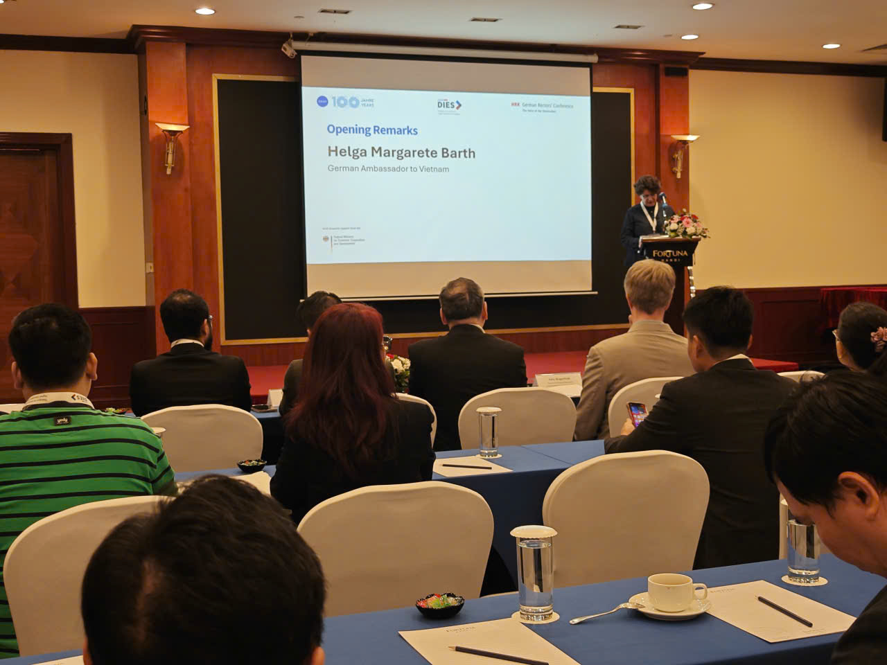 „Wir versammeln uns heute, weil wir die bedeutende Rolle der Hochschulbildung und Innovation bei der Gestaltung der Zukunft des Landes verstehen. Und das gilt nicht nur für Vietnam und Deutschland. Vietnam hat sich ehrgeizige Ziele für seinen Hochschulsektor gesetzt. Demnach will sich das Land zu einem Zentrum für Innovation und Talentförderung entwickeln. Tatsächlich hat die internationale Zusammenarbeit zur Verwirklichung der Ziele in diesem Bereich beigetragen. Deutschland ist seit langem ein Partner Vietnams im Hochschulbereich und wird Vietnam auch in der neuen Ära mit ihren vielen Herausforderungen weiterhin begleiten.“
