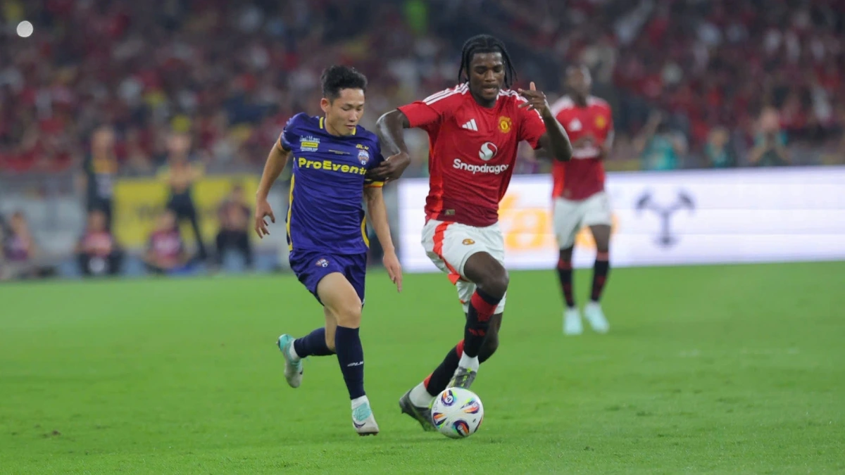 Fußballspieler Hai Long zeigt gute Leistung beim Spiel gegen MU. (Foto: Nhu Dat/VOV) |