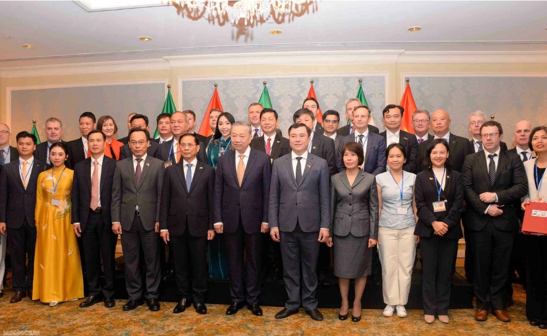 Auch der Vorsitzende des vietnamesischen Konzerns FPT Truong Gia Binh und Professor Cathal Gurrin, der Direktor des Forschungszentrums ADAPT von Dublin City University, tauschten Dokumenten zur Vereinbarung aus.