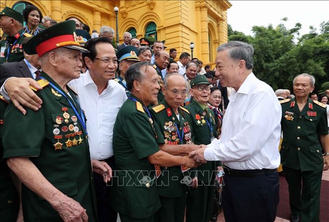 Staatspräsident To Lam beim Treffen mit Menschen mit Verdiensten für die Revolution in Hanoi. (Foto: VNA) |