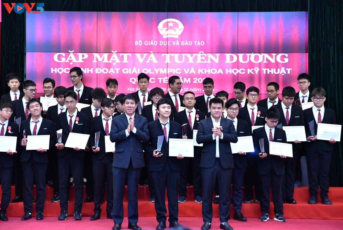 Beim Treffen erhielten vier Schüler Loburkunden des Bildungsministers. Auch 34 Lehrerinnen und Lehrer, die zur Leistung der vietnamesischen Mannschaften bei regionalen und internationalen Wettbewerben beigetragen hatten, wurden ausgezeichnet.