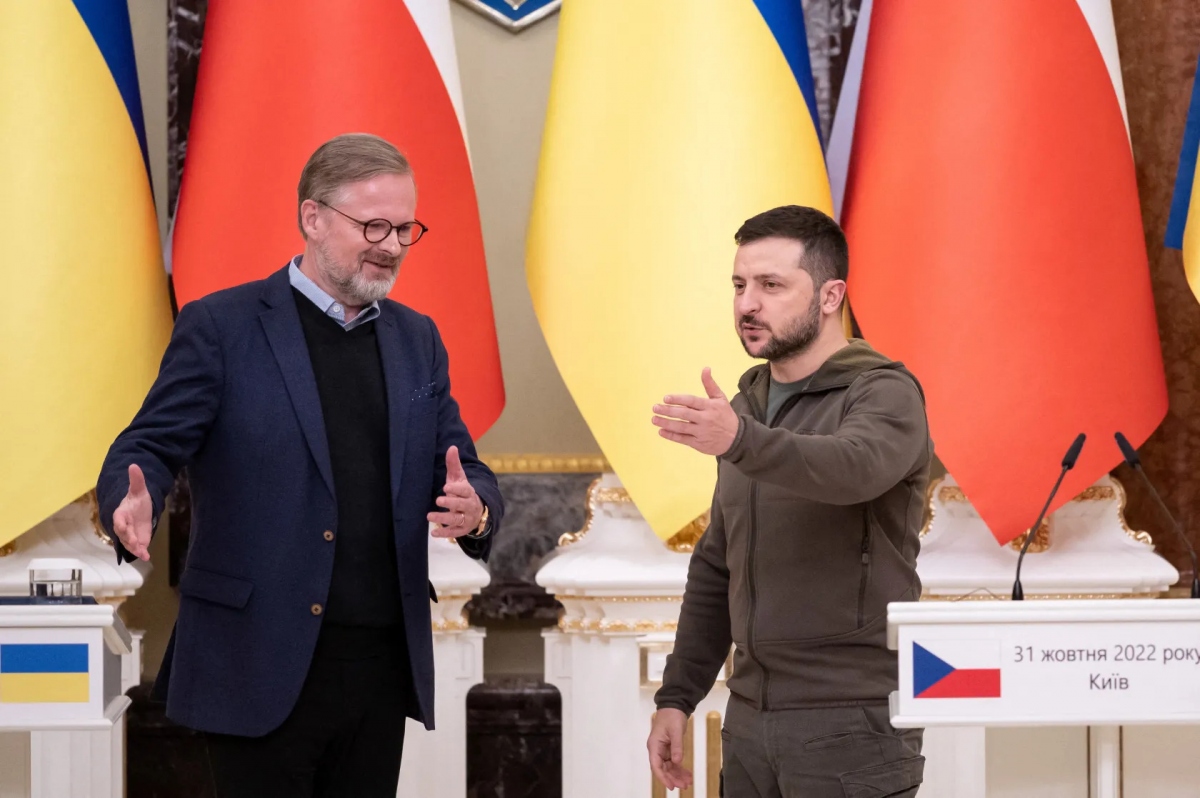 Der tschechische Premierminister, Petr Fiala (l.) und der ukranische Präsident,