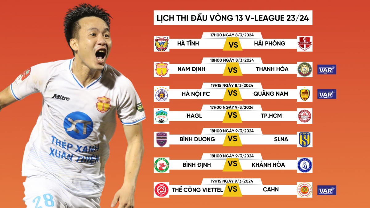 Das sind die Spiele zwischen Nam Dinh und Thanh Hoa, Hanoi FC und Quang Nam und The Cong Viettel und Hanoier Polizei. Die 13. Runde findet am 8. und 9. März statt. Das ist die letzte Runde der Hinspiele. Nach dieser Runde wird dieses Turnier für etwa drei Wochen vorläufig eingestellt, damit sich die vietnamesische Fußballmannschaft für die 2. Qualifikationsrunde der Fußball-Weltmeisterschaft in Asien qualifizieren wird.