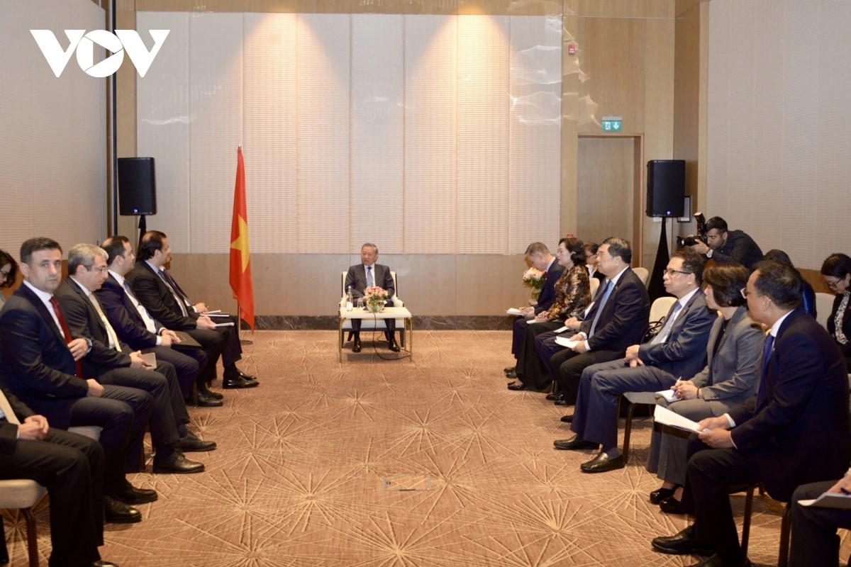 KPV-Generalsekretär To Lam trifft Leiter einiger großer Unternehmen von Aserbaidschan. (Foto: Van Hieu) |