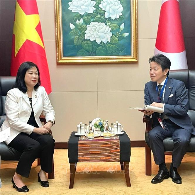 Gesundheitsministerin Dao Hong Lan beim Gespräch mit dem japanischen Vizegesundheitsminister Hamachi Masakazu. (Foto: VNA) |