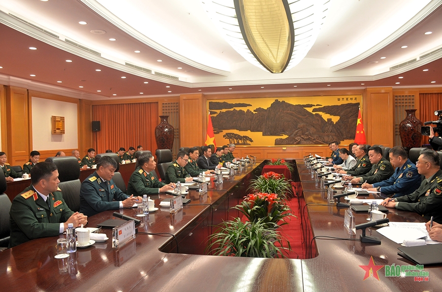 Das Gespräch zwischen dem Vizevorsitzenden der Zentralen Militärkommission Chinas He Weidong und dem vietnamesischen Verteidigungsminister Phan Van Giang in Peking. (Foto: qdnd.vn) |