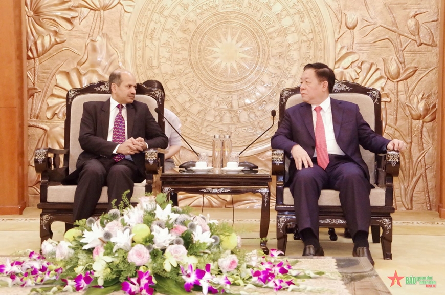 Der Leiter des KPV-Komitees für Erklärung und Erziehung Nguyen Trong Nghia (r.) und der indischen Botschafter Sandeep Arya. (Foto: Qdnd.vn) |