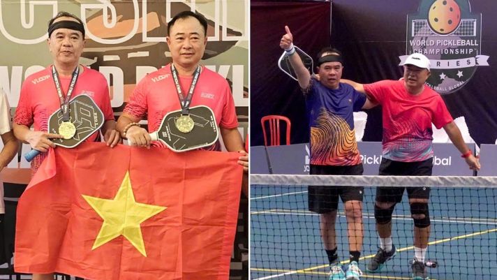 Die Brüder Ly Minh Triet und Ly Minh Tan gewinnen den 50+ Open-Meistertitel der Pickleball-Weltmeisterschaft auf Bali. (Foto: techz.vn) |