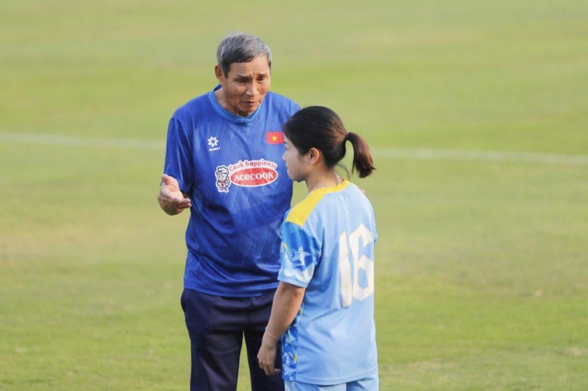Trainer Mai Duc Chung und eine Fußballnationalspielerin. (Foto: VFF) |