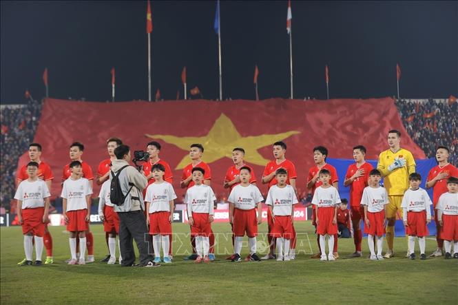 Die vietnamesische Fußballnationalmannschaft vor dem Spiel gegen die Auswahl aus Indonesien beim ASEAN-Cup 2024. (Foto: Minh Quyet/VNA) |