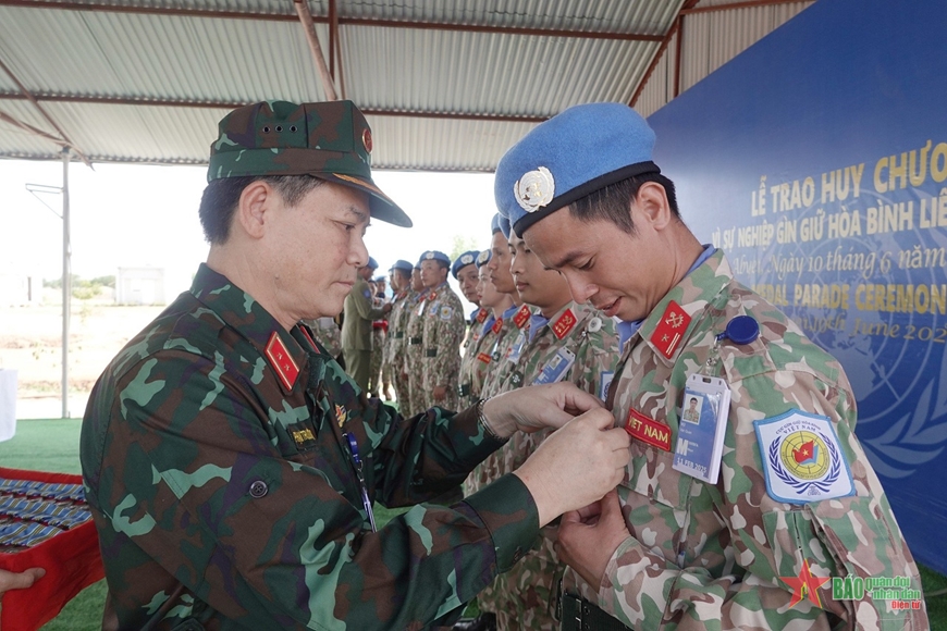 Mitglieder der Pioniertruppe Nr. 2 Vietnams in UNISFA wurden mit Medaille für UN-Friedenssicherung geehrt. (Foto: Ngoc Hung) |