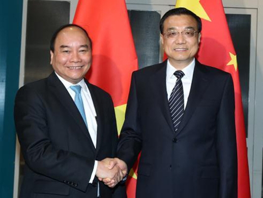 | Der vietnamesische Premierminister Nguyen Xuan Phuc (l.) und sein chinesischer Amtskollege Li Keqiang beim Treffen am Rande des ASEM-Gipfels in der Mongolei. (Foto: VNA) |