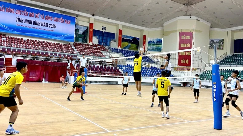 Ein Spiel des Volleyballturniers der Männer 2025 in Ninh Binh. (Foto: nhandan.vn) |