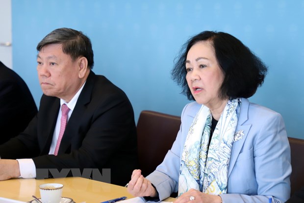 Die ständige Vertreterin des Sekretariats der Kommunistischen Partei Vietnams, Truong Thi Mai, beim Gespräch mit dem Minister für öffentliche Verwaltung im schwedischen Finanzministerium. (Foto: Manh Hung/VNA) |