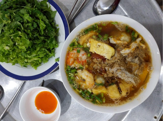 Die schöne Kombination von den Zutaten hat den attraktiven Geschmack der beiden Gerichte geschaffen. Es ist die „Bun Rieu“-Nudel und „Mien Xao Cua“, also gebratene Glasnudeln mit Krebsfleisch. Die „Bun Rieu“-Nudel ist ein traditionelles Gericht Vietnams mit Knochenbrühe, Tomaten und Krebsfleisch. Dazu können auch noch Tofu, Schweinefleisch und Rinderfleisch hinzugefügt werden. „Mien Xao Cua“ ist sehr beliebt wegen des guten Geschmacks von frischem Krebsfleisch.