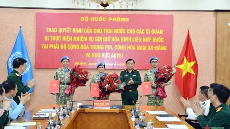 (VOVWORLD) - Das Verteidigungsministerium hat am Montag in Hanoi das Entscheidungsschreiben des Staatspräsidenten an drei Offiziere überreicht, die die Aufgaben der UN-Friedensmission in Zentralafrika, im Südsudan und im Abyei-Gebiet bald übernehmen werden.