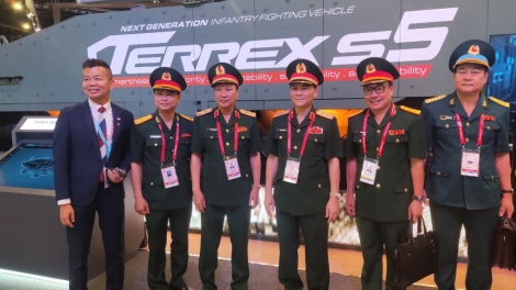 (VOVWORLD) - Eine Delegation des vietnamesischen Verteidigungsministeriums unter der Leitung des stellvertretenden Generalstabschefs der vietnamesischen Volksarmee, Generalmajor Pham Truong Son, nimmt vom 20. bis 25. Februar an der 9. Luftfahrtmesse Singapur 2024 teil.