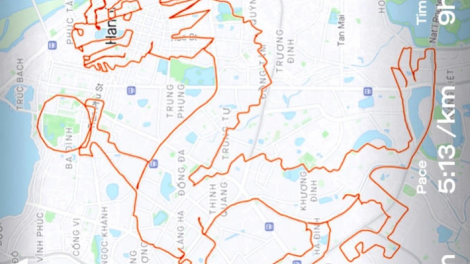 (VOVWORLD) - Nguyen Ngoc Tien und seine Freunde aus Hanoi sind 43 km gelaufen und 67 km Rad gefahren, um einen Drachen auf der Landkarte zu zeichnen.