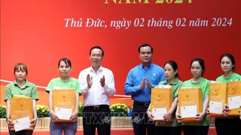 (VOVWORLD) - Während seiner Dienstreise in Ho-Chi-Minh-Stadt hat Staatspräsident Vo Van Thuong am Freitagnachmittag an einer Veranstaltung anlässlich des traditionellen Neujahrsfests Tet in der Stadt Thu Duc teilgenommen und Arbeitnehmer sowie Einwohner der Stadt zum Tet beglückwünscht.