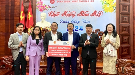 (VOVWORLD) - Zum bevorstehenden Neujahrsfest Tet hat Vizepremierminister Le Minh Khai am Sonntag mehr als 200 Geschenke an arme Haushalte und Familien der Menschen mit Verdiensten in Kreisen Nam Po und Muong Cha in der nordvietnamesischen Bergprovinz Dien Bien überreicht.