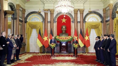 (VOVWORLD) - Vietnam legt einen großen Wert auf die Entwicklung der Beziehungen zu Deutschland. Das sagte Staatspräsident Vo Van Thuong bei einem Gespräch mit dem deutschen Bundespräsidenten Frank-Walter Steinmeier am Dienstag in Hanoi.