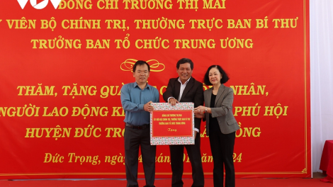 (VOVWORLD) - Am Sonntag hat das Mitglied des Sekretariats der KPV Truong Thi Mai die Arbeitnehmer in der Industriezone Phu Hoi im Hochlandprovinz Lam Dong besucht und ihnen Geschenke überreicht.