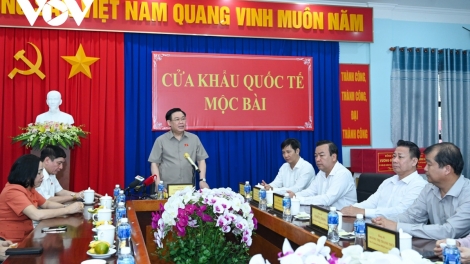 (VOVWORLD) - Parlamentspräsident Vuong Dinh Hue hat am Mittwoch Einsatzkräfte am internationalen Grenzübergang Moc Bai in der südvietnamesischen Provinz Tay Ninh besucht.