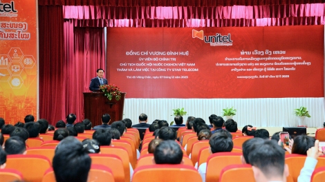 (VOVWORLD) - Bei seinem Besuch in Laos hat Parlamentspräsident Vuong Dinh Hue am Donnerstag die Firma Unitel des Telekommunikationskonzerns der vietnamesischen Armee Viettel besucht.
