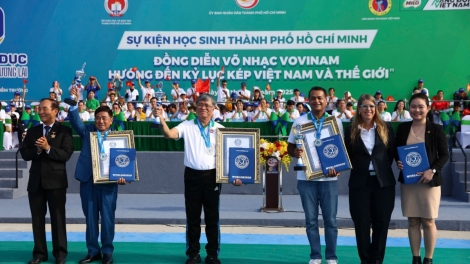 (VOVWORLD) - Am Sonntag haben mehr als 60.000 Schülerinnen und Schüler in Ho-Chi-Minh-Stadt an Hybrid-Vovinam-Vorführungen teilgenommen und damit einen Rekord Vietnams und einen Weltrekord aufgestellt.