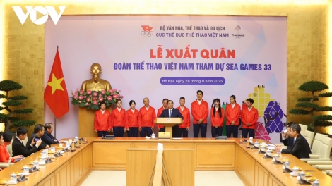 (VOVWORLD) - Premierminister Pham Minh Chinh hat am Freitag in Hanoi an der Verabschiedungszeremonie der vietnamesischen Sportdelegation für die 33. Südostasienspiele (SEA Games 33) in Thailand teilgenommen.