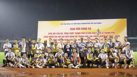 (VOVWORLD) - Am Freitag hat im Thong-Nhat-Stadion in Ho-Chi-Minh-Stadt ein Fußballfreundschaftsspiel zwischen der Mannschaft der Beamten und Angestellten von Ho-Chi-Minh-Stadt und der Mannschaft der Künstler der Stadt stattgefunden.