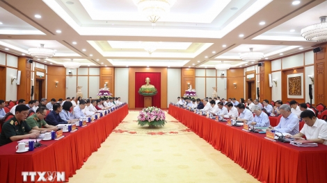 (VOVWORLD) - In Hanoi hat KPV-Generalsekretär To Lam am Donnerstag mit dem Politbüro und den Parteileitungen von Hanoi und Ho-Chi-Minh-Stadt über Parteidokumente getagt, die den Parteikonferenzen beider Städte der Amtszeit 2025-2030 vorgelegt werden.