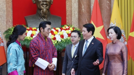 (VOVWORLD) - König Jigme Khesar Namgyel Wangchuck und Königin Jetsun Pema Wangchuck von Bhutan haben am Freitag Hanoi verlassen und damit erfolgreich ihren Staatsbesuch in Vietnam beendet, der vom 18. bis zum 22. August auf Einladung von Staatspräsident Luong Cuong und seiner Frau stattfand.