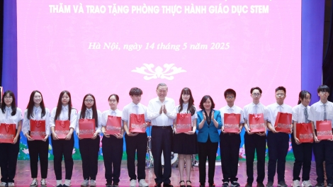 (VOVWORLD) - KPV-Generalsekretär To Lam hat am Mittwoch in Hanoi die Hanoi-Amsterdam- Elite-Oberschule und die Mittelschule Cau Giay besucht.