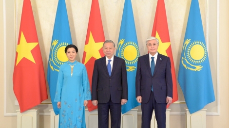 (VOVWORLD) - Die Begrüßungszeremonie für KPV-Generalsekretär To Lam bei seinem Staatsbesuch in Kasachstan hat am Dienstag im Präsidentenpalast Ak Orda in der Stadt Astana stattgefunden.